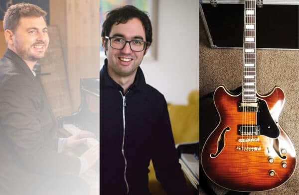 Op de foto v.l.n.r. Hue Blanes, Luca Ridolfo en een gitaar van Alex van der Spek.