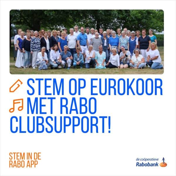 De Rabo ClubSupport is weer begonnen! Rabobankleden van Leiden-Katwijk kunnen van 2 t/m 24 september via de Rabo App of Rabo Online Bankieren hun stem uitbrengen. Dus als jij het Eurokoor een warm hart toedraagt, stem dan op ons!